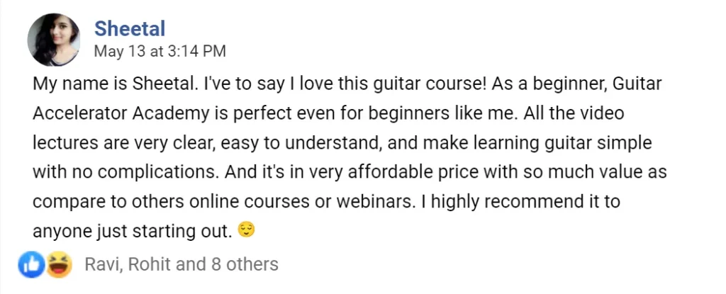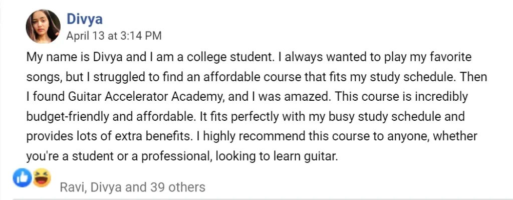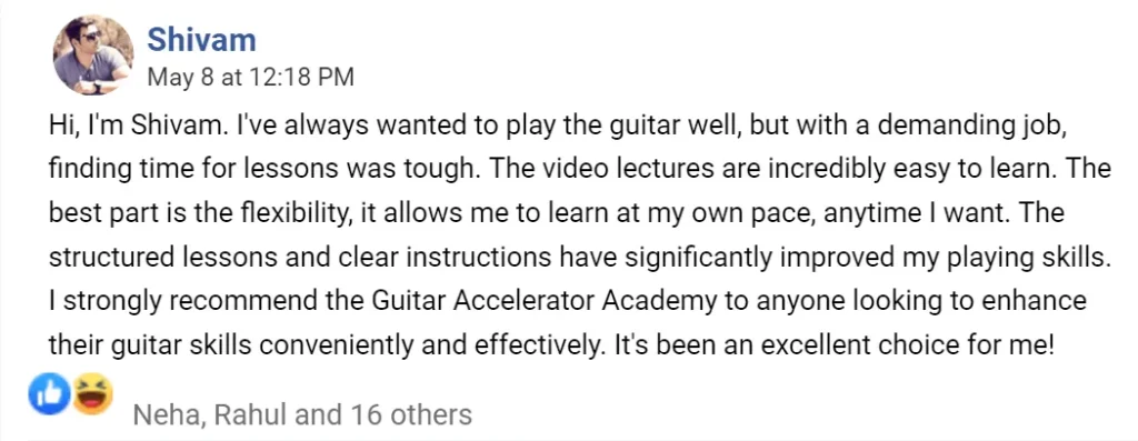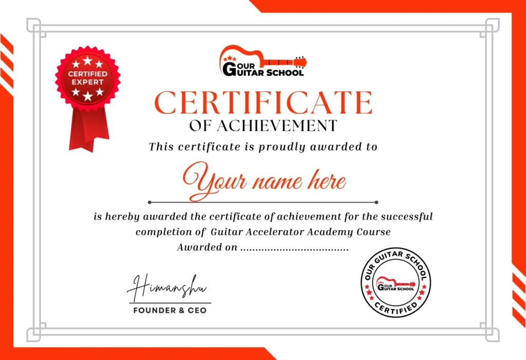 Ans: Yes, our entire course, Guitar Accelerator Academy, is taught in Hindi. This ensures that you can easily follow along and understand each lesson, making it simpler for you to learn guitar from basics to advanced levels