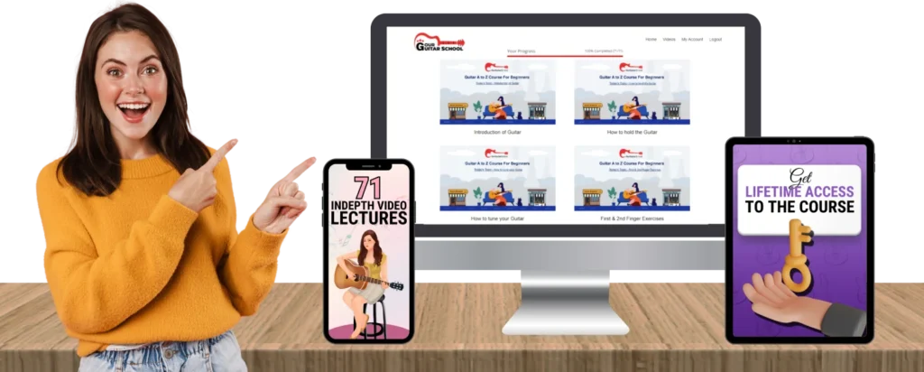 Our course is designed just for you. With 71 video lectures and step-by-step guidance, you’ll find learning the guitar easy and enjoyable.