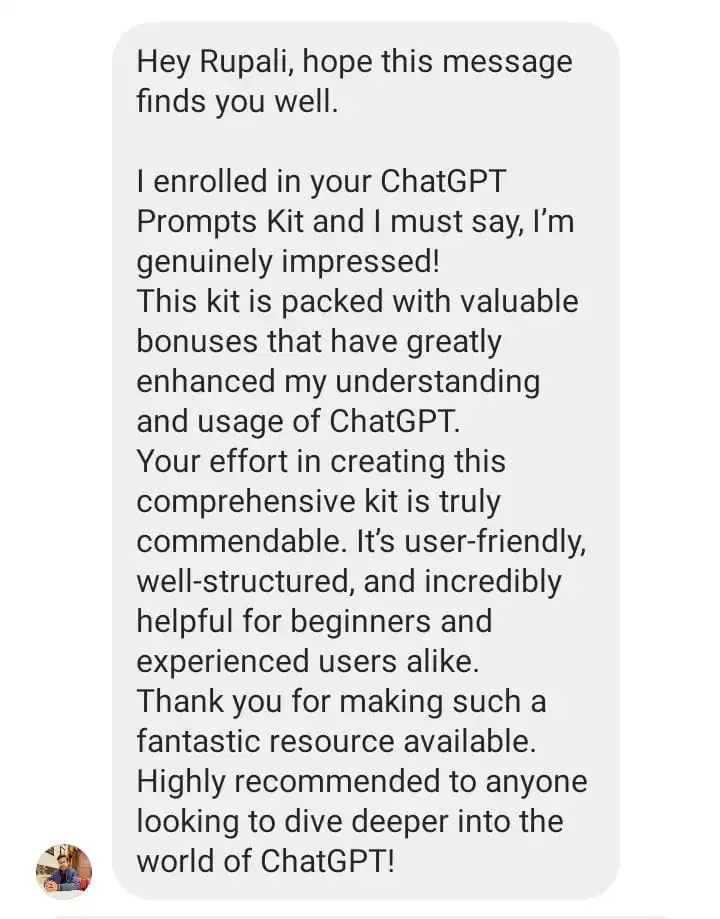 ChatGPT Prompts is a product designed to enhance your experience with OpenAI’s ChatGPT. It provides carefully crafted prompts that you can use to generate specific and high-quality responses from the ChatGPT model.